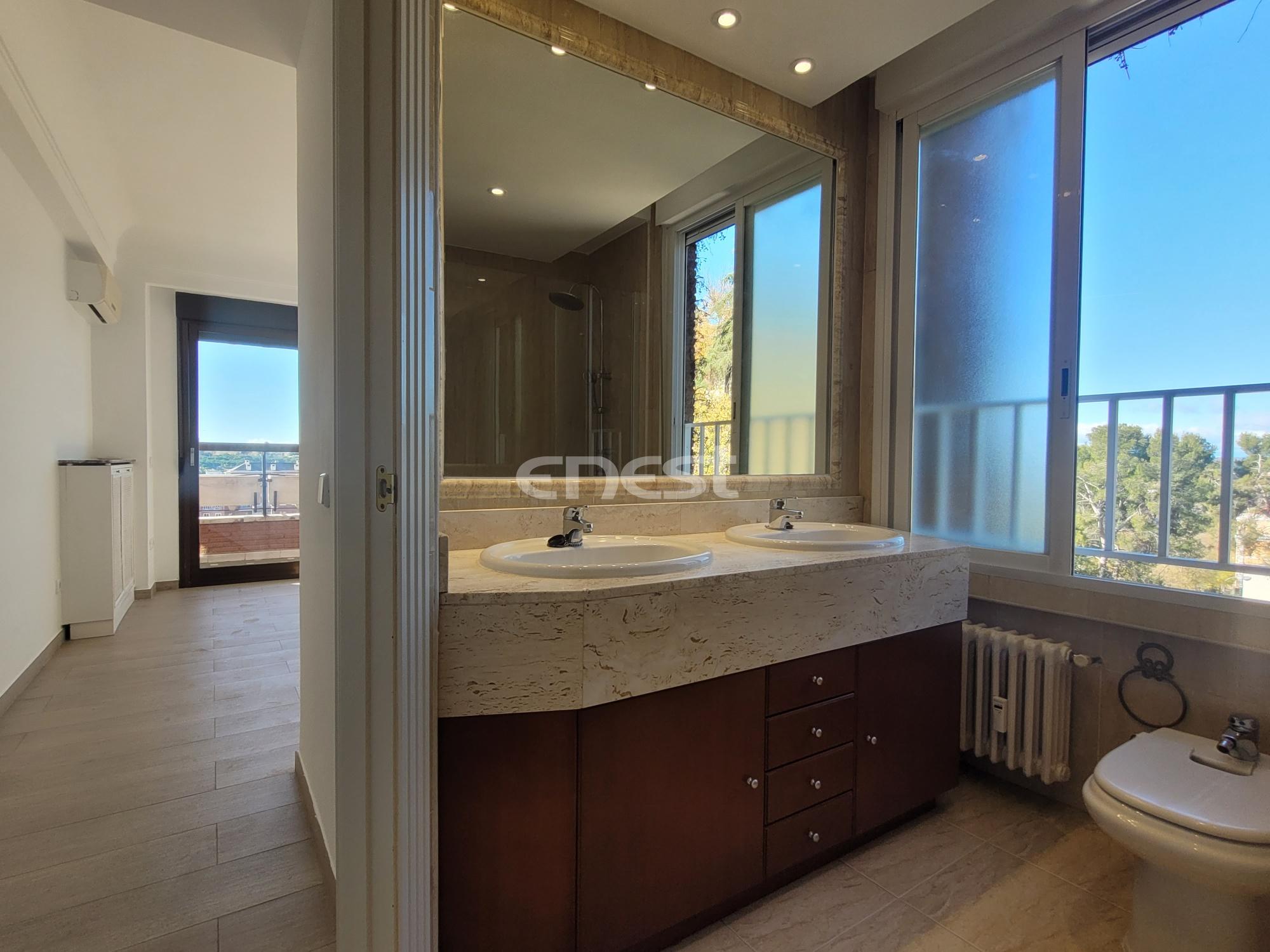 El dormitorio principal cuenta con armarios empotrados, acceso a la terraza y un cuarto de baño en suite, proporcionando un espacio privado y confortable. El segundo dormitorio también dispone de baño en suite, garantizando comodidad e independencia. Además, la vivienda incluye dos dormitorios adicionales que comparten un cuarto de baño completo.
